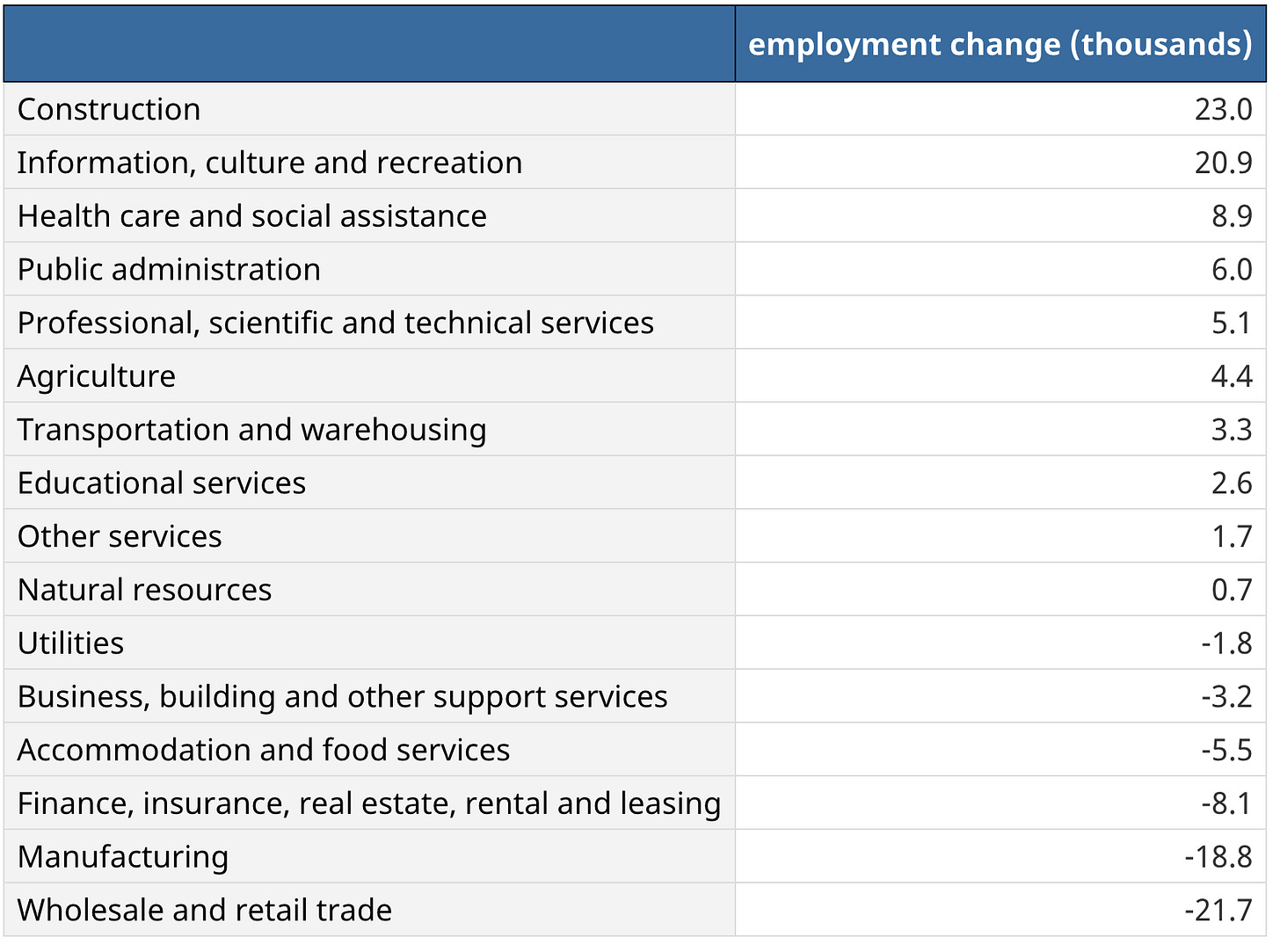 The net number of construction jobs added compared to real estate, which lost jobs—calculated based on jobs added or lost in the Statistics Canada Sectors representing construction (+23,000) versus real estate (-8,100) in October’s real estate survey.
