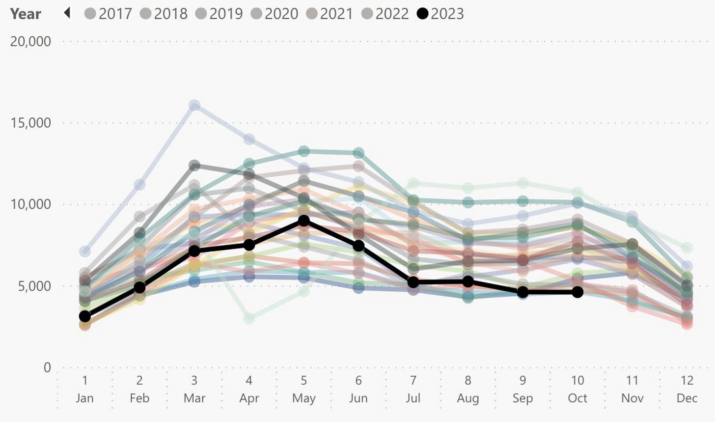 Last month showed us the lowest number of homes sold in the month of October since the data set began, according to TRREB’s MarketWatch. Home sales were down just 5.8% since last year, but last October was a brutal month as well: