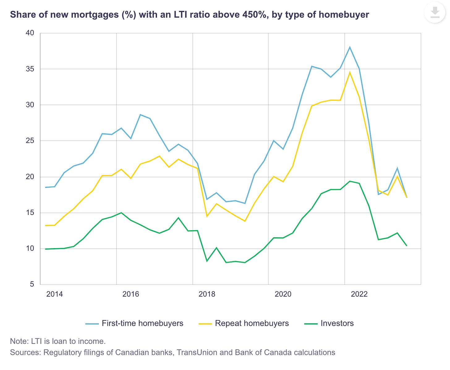 The funny part is that investors actually consume the fewest individual mortgages over 4.5x income out of anyone in the market, per Bank of Canada data from “indicators of financial vulnerabilities”. That being said, it will definitely cap exposure on a portfolio basis and make it more important than ever for investors to buy for cash flow to increase buying power, rather than capital appreciation.